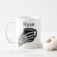 Personalised mug featuring a skeletal hand holding a coffee cup, with a custom name printed above the illustration. A simple inside joke from imaging culture and a fun appreciation gift for radiology and radiography staff, including radiographers, radiologists, and anyone who works in a radiology department. The skeletal illustration also gives it a subtle Halloween or spooky-season feel, making it a playful gift beyond the workplace.