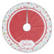 Wintery, holiday snowflakes are the background for this chic, classy, personalised Christmas tree skirt. Holiday blue, red, and gold make this an elegant finishing touch for your special Christmas tree.