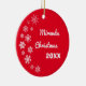 Snowflakes accent the side of this ornament with fully customisable text to the right. Change the red background shown to any colour you prefer! The font style and size can also be changed. If there is room to fit it you can say it. A few ideas: a couple's first Christmas, a family group, etc. The back of the ornament is blank for you to personalise further if desired.
