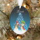 This winter holiday Christmas tree ornament features a charming Snowman and Snow-Woman. They are making a heart of candy canes and enjoying an enchanting winter evening lit by a stary holiday tree in the background.
