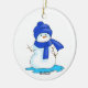 Personalised snowman blue hat and scarf ceramic tree decoration