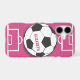 A fun soccer ball design fully customisable with your own name or text, featuring a soccer ball on a girly pink soccer pitch. Personalise the custom text is in a coordinating pink. Ideal gift for the soccer player in your life. Other colour combinations are available in our store and we welcome custom requests, just contact us through our GiftsBonanza store prior to purchase and we will be happy to assist.