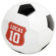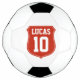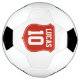 Personalised soccer ball with jersey number or age. Cute Christmas or Birthday gift idea for sporty boys and girls who love playing soccer / football. Athletic typography design with red shield emblem logo. Add your own name, sports quote or monogram. Make your own fun favour for a children's Birthday party. Add your own text for grandson, son, grandchild, granddaughter, daughter, nephew, cousin etc. Also great as thank you gift to futbol coach, soccer mum, soccer dad etc.