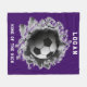 Creative soccer-themed gift blanket featuring a flying soccer ball. To personalise edit text to add soccer player, coach or team sports fan's name.