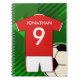 A great gift for any budding soccer football star, sports fan or keen soccer supporter featuring a red and white soccer jersey with your name and number with a football and green modern football pitch background.