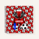 Treat the future soccer star in your life to one of these personalised monogram soccer notebooks. Featuring the Letter A with a template for the name to be added . Hanging from the letter A is a pair of soccer cleats, with a initialled water bottle and soccer ball either side. Background feature matching red as in the Initial and black and white soccer balls.