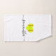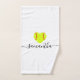 Personalised softball towel with a simple cute heart shaped softball graphic and custom name or text in a feminine girly and modern pretty script font monogram in bright yellow, red, black and white. Any girls or womens softball player would appreciate the elegant look on this modern and minimal useful softball themed gift.