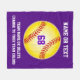 Personalised Softball Team Gifts. Softball Fleece Blanket with Your Text and in Your Team Colours. CALL Designer Linda, to CHANGE the colours or to assist you in changing the purple and white softball blanket colours to ANY COLOR combination. The softball is a photograph of the Hawaiian Sun enhanced by Little Linda Pinda. Very cool glowing softball fleece blanket are perfect gifts for softball seniors at your end of season senior night softball party.