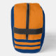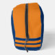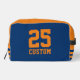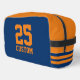 Custom sports jersey number athletic stripes Dopp Kit. Personalise with custom name and jersey number. Navy blue and orange example. Great for fans of football, basketball, volleyball, soccer, softball, hockey and other sports.