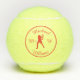 These Tennis Balls feature a red silhouette of a male tennis player in full swing with circular borders around the edge and places to add your name and initials to personalise them so that they are unique to you. Tennis clubs or trainers can even add their club name or details as all of the text, borders and backgrounds can be coloured to suit your own requirements