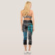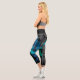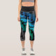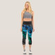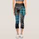 Personalised Sporty Stripes in Blue & Teal Black Capri Leggings