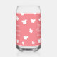 Personalised spring baby shower party can glasses. Double sided print. Cute pink and white design with butterfly silhouettes and elegant typography.