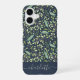 Add chic spring style to your phone with this elegantly patterned case, featuring delicate light green leaves and botanical foliage on a rich midnight navy blue background. Personalise with a name or monogram along the bottom.