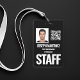 This simple and professional design features a black background. The template is easily customisable, just staff name, job title, employee ID. The bottom edge has a QR code that can be changed to any desired title. The back has your contact information and instructions for returning if found. This classic design works well for any type of event.
