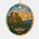 A Personalised Travel Souvenir Ornament designed to celebrate your unforgettable trip to Edinburgh in Scotland. Whether you went for work, enjoyed a romantic getaway, or took part in a school exchange program, this ornament commemorates a special moment you’ll always cherish and want to remember for years to come. This ornament features a stained-glass-style design creating a truly eye-catching piece.