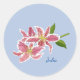 This Personalised Stargazer Lily Classic Round Sticker design is from a painting by Julia Morrill