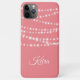 Illustrated sparkling string lights and your name in fancy type, accent this coral iPhone Case, making it a perfect accessory or gift. This case can easily be personalised without a monogram or name if preferred.