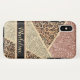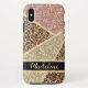 Personalised faux Rose Gold, Blush Pink Glitter. Mixed pieces with an animal leopard skin spot print and gold glitter and copper trim bars. Diagonal striped lines and patches pattern design colour block. Luxury and unique geometry. Customise this fancy script font with your name, and monogram, or initial, or text for a chic girly stylish design. Modern and trendy geometric style.