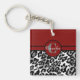 This design features a burgundy diagonal striped pattern on top and a black and white leopard print on the bottom. In the centre, there is a circle monogram logo which can be personalised with the recipient's initial and first name.