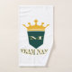 Highlight your favourite team name with this custom sports themed hand towel designed with a crown above a banner plus team name and initial in the centre decal allowing you the ability to customise your favourite team or personal name. This team towel can be personalised with any fan or sports team name. This cool sports themed team name hand towel makes a great gift for fans, players, and team supporters alike