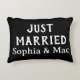 Just Married Personalised Name Simple Stylish Modern Minimal Monogram Black Colour Pillow Case.