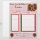 This recipe page matches the binder that I have in my store. The page has a faded dark red and white small checked background, an image of a a bunch of sunflowers in the top right hand corner. The bottom 2 corners have images of single sunflowers. There is a narrow box with a dark red border and leaves and sunflowers around it with a white background to list the recipe ingredients, and a larger matching box to put the directions for the recipe. You can either punch holes along the edge to add it to the binder, or you can purchase clear sleeves and slide your page down inside to keep it neat and clean. The back side is blank so you can add extra notes if you like, or take a favourite photo of the food after it is fixed and mount it to the back. You can also slide the pages back to back in the clear sleeves. The choice is yours. Would make a nice gift.