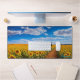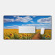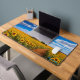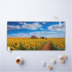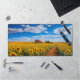 Bring the beauty of this sunflower field in full bloom into your workspace with this exquisite desk mat. Personalise it with a name printed on the lower right corner. This mat features a view of sunflower fields, barn houses and blue skies with a few cotton candy clouds with a high-quality print from a high definition graphic. It provides a smooth and comfortable surface for your work for your laptop, keyboard and mouse. It can also transform your workbench with a stylish and elegant touch. Perfectly suited for all creators, artists, writers and anyone inspired.
