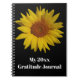 This personalised notebook has a large yellow Sunflower on a black background (customisable) with bold white text that says, "My 20xx Gratitude Journal" on it that can be changed to say whatever you want it to.