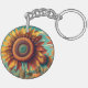 Vintage Boho Sunflower Keychain, Fall Key Chain, Cheerful Retro Sunflower Keychain Sunflower Keychain.