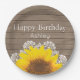 Personalised Sunflower, Lace and Wood Paper Plate