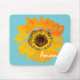 Bring some colour and nature to your work space with this pretty sunflower print mouse pad with a turquoise background with your name in white.