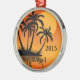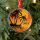 Sunset Tropical Beach and Silhouette Palm Trees Christmas Ornament. Personalise with a name and year.