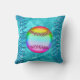 UNIQUE Personalised Super Cute Turquoise Glass look Unique Multicolored Softball Throw Pillows for Girls Bedroom. Fantastic Softball Team Gifts in Your Colours or with a traditional yellow softball.