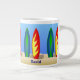 This surfing themed coffee mug has colourful surfboards and "Surfer Dude" on one side and your personalised name on the other side. Great gift idea for a surfer!