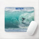 Personalised surfing theme mouse pad with big ocean wave surfer gift idea.
