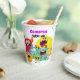 Bring some monstrous fun to your party with this personalised cute monster paper cup! Featuring a vibrant mix of happy monsters in red, green, yellow, blue, aqua, and orange, celebrating with confetti, this eco-friendly party cup lets guests write their names to reduce waste and keep drinks organised. Perfect for a monster birthday party, colourful kids’ celebration, or little monster-themed event, this custom cup adds a playful and sustainable touch. Complete the set with matching monster plates, banners, and decorations!