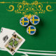 Personalised Swedish flag poker chips for card games, as wedding tokens and more. Fun gambling accessory for poker nights. Also nice as favours or souvenirs for Las Vegas style wedding party. Flag of Sweden design. Scandinavian pride.