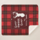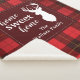 Cute home sweet home Christmas blanket you can easily customise by clicking the "Personalise" button, Featuring deer silhouette and clan Wallace tartan in red gold chequered pattern.