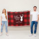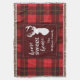 Cute home sweet home Christmas throw blanket you can easily customise by clicking the "Personalise" button, Featuring deer silhouette and clan Wallace tartan in red gold chequered pattern.