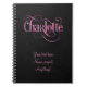 Personalised Swirly Script Charlotte Pink on Black Notebook