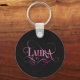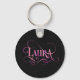 Personalised Swirly Script Laura Pink on Black Key Ring