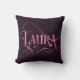 Personalised Swirly Script Laura Pink on Purple Cushion