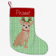Personalised Tan Chihuahua and Green Polka Dots Small Christmas Stocking
