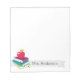 A cute personalised teacher notepad design. Design features a stack of colourful books with a red apple on top. Modern and stylish gift perfect for any teacher or school principal.