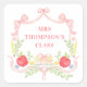 The classroom crest stickers have a crest with pink bows, a stack of school books, apples and pencils. Colours include, Pink, red, blue, yellow, green and black. You can personalise with a teachers name. If you have any questions or need help customising this invitation, please reach out. I'm happy to help.