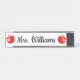 I was very pleased when I received my name plate. The brightness of the yellow caught my eye immediately because it was so true to color of the picture. The sturdiness of the material lets me know it won’t get bent or broken easily. The sturdiness of the card stock is a plus as well. The colors even on the chalkboard and apple are true to life colors. The apple looks like you can take a bite out of it.