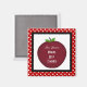 Red Apple Magnet, trimmed in black with white polka dots. Personalise by changing text and add teachers name.