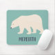 Dress up your desk for Christmas or winter with this fun personalised mousepad or create a personalised gift for fans of polar bears. This mouse pad features an illustration of a polar bear in cream or ivory white against a light teal background with your name or message in dark navy blue lettering.