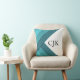 Teal and modern, this personalised teal and white geometric patterned pillow will enhance any decor.