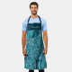 Personalised teal blue Agate print apron with name in script lettering. Chic blue sequence style and marble geode pattern.